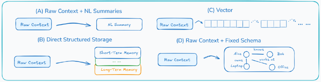 - 意味を捉えるベクトルへの漸進的圧縮(Progressively Compress into Vectors):情報を、意味を反映した密な数値ベクトル(エンベディング)としてエンコードし、古いエンベディングを集約・圧縮することで、より抽象的で安定した意味記憶を構築します。これはセマンティック検索において特に有用です。