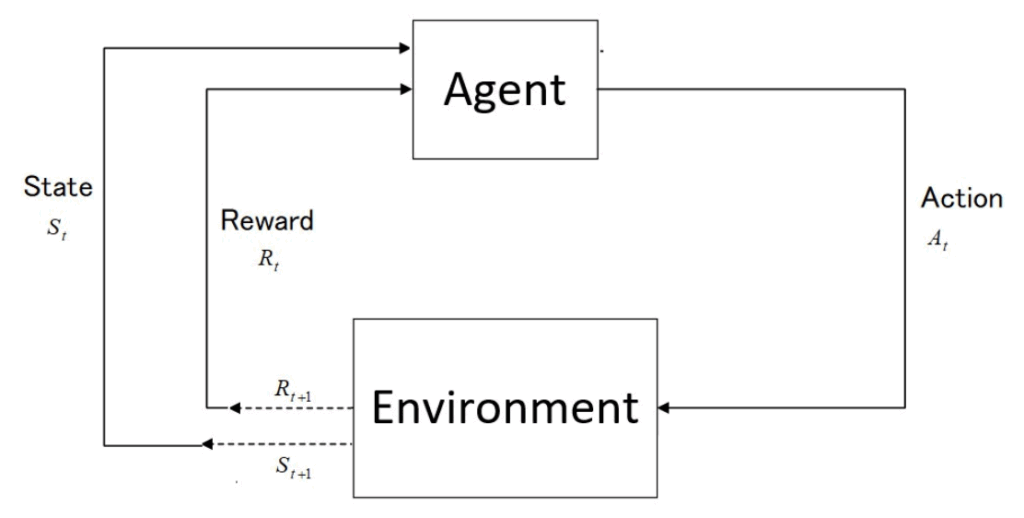 強化学習(Reinforcement Learning, RL)は、エージェント(Agent)が環境(Environment)と相互作用し、試行錯誤を通じて最適な行動戦略を学習する機械学習の一分野です。このプロセスにおいて、エージェントは自身が実行した行動の結果として環境から報酬(Reward)を受け取り、その報酬を最大化するように方策(Policy)を改善していきます。強化学習の目的は、累積報酬和(Return)を最大化する方策を見つけることです。