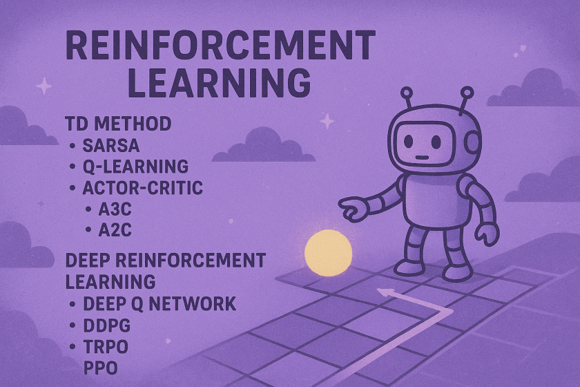 - TD学習(Temporal Difference Learning) モンテカルロ法と動的計画法の中間に位置するモデルフリー手法です。エピソードの途中でも、各タイムステップでTD誤差(Temporal Difference error)を計算し、それを用いて価値関数を逐次的に更新します。これにより、オンライン学習が可能となります。