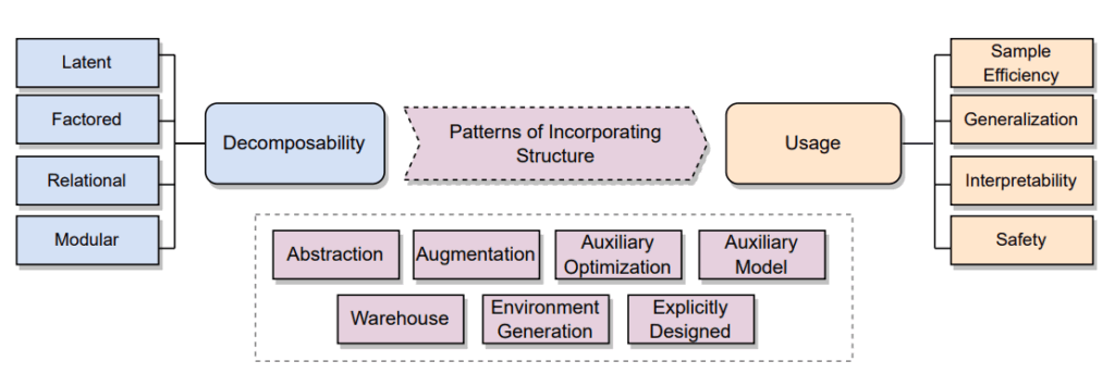 - 構造情報を環境モデルなどの補助モデルに組み込み、学習経験の一部または全体を生成するために利用します。これにより、モデルベースRLにおける効率性と汎化能力を高めます。