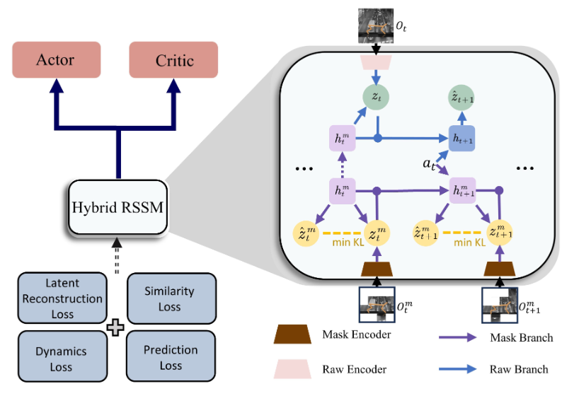 - Hybrid-RSSMとフィルタリング技術: この課題に対し、最新の研究では「Hybrid-RSSM」のような堅牢なアーキテクチャが提案されています。これは、以下の二つの技術を組み合わせることで、ノイズに強い表現学習を実現しています。